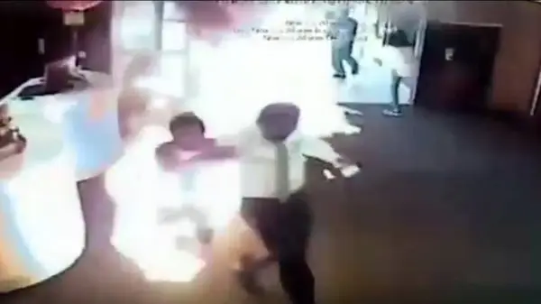 وی پس از لحظاتی در حالی که یک باک بنزین در دست داشت دوباره وارد بانک شد و با ریختن بنزین اقدام به روشن کردن فندک کرد. اما شعلههای آتش مهلت فرار Escape به وی نداد و ناگهان تمام بدن وی غرق شعله های سوزان آتش شد. در این ویدئو مشاهده می شود که مشتریان وحشت زده با دیدن صحنه بنزین ریختن وی در بانک تلاش می کنند تا از بانک خارج شوند. همچنین در لحظه حادثه، یک زن در حالی که نوزادش را با کالسکه حمل می کرد در بانک حضور داشت.