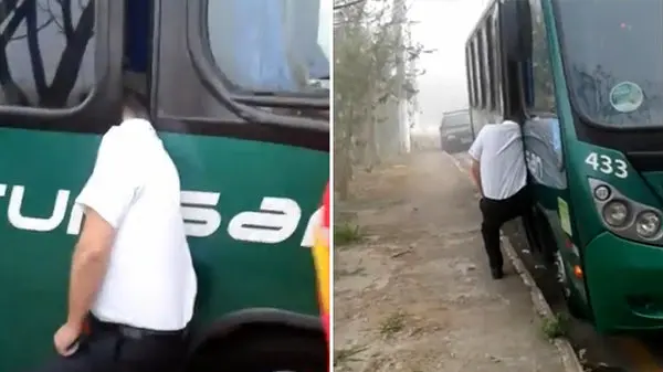 مرگ عجیب هفته / راننده لای در اتوبوس گیر کرد و مرد! + فیلم