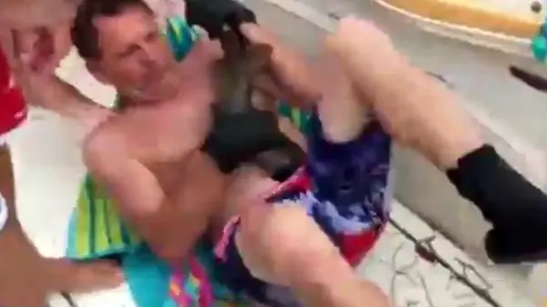 این مرد با کوسهای که شکم او را رها نمیکرد از آب بیرون آمد تا با کمک دوستانش از آروارههای قوی این جانور خلاص شود.