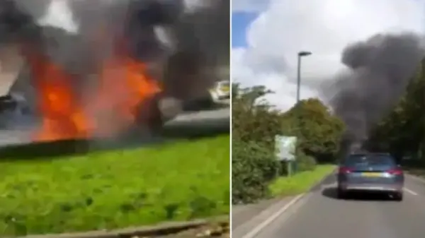 رکنا: یک دستگاه خودوری سواری در شهر دورچستر انگلستان دچار حریق و انفجار شد.