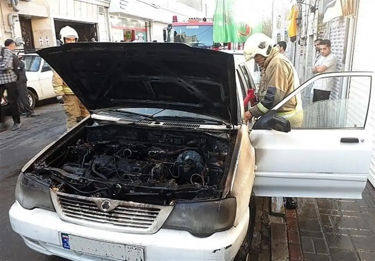 آتش گرفتن پراید در مجتمع ۸۰ واحدی در تهران + تصاویر