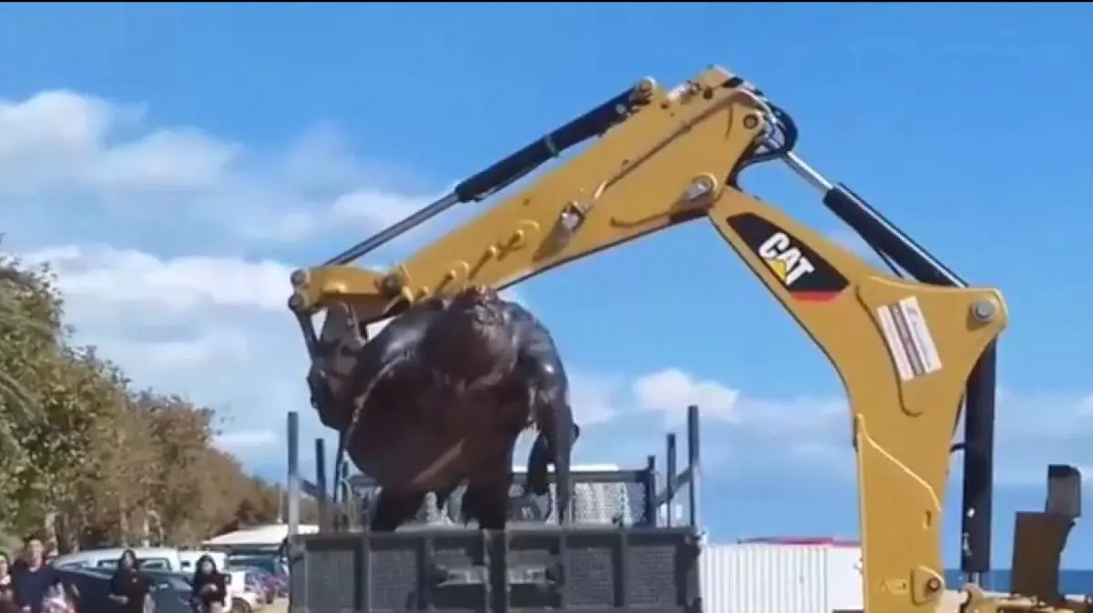 رکنا: در فیلم زیر لاک پشتی عظیم الجثه را مشاهده می کنید که با بیل مکانیکی در حال جا به جایی است.