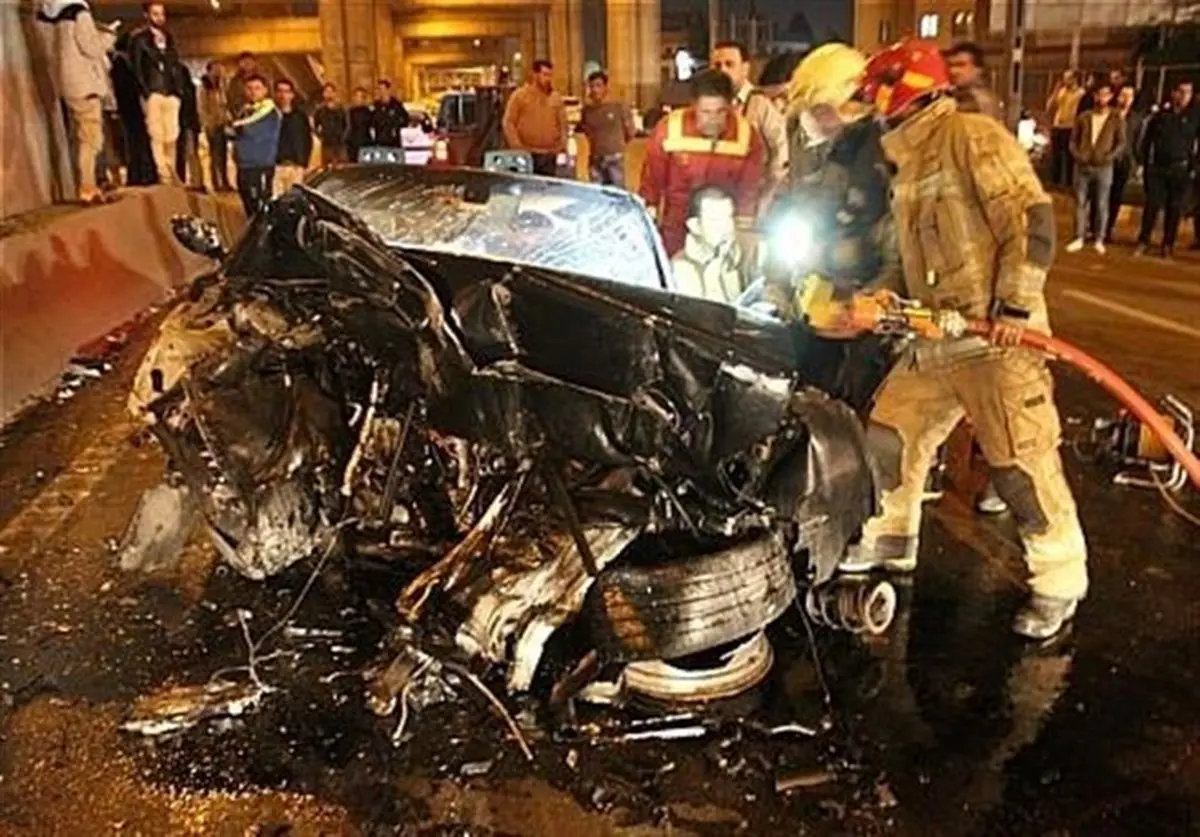 رکنا: یک دستگاه BMW پس از تصادف با ستونهای پل هوایی شهید صدر، متلاشی شد.