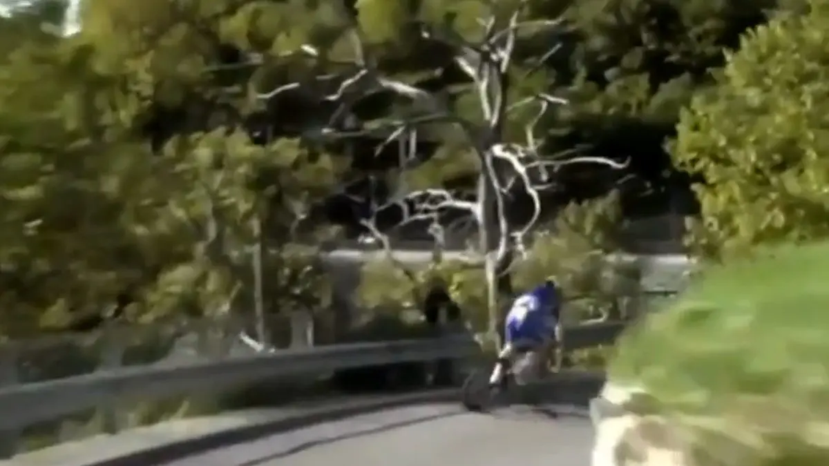 رکنا: یک دوچرخه سوار بلژیکی در حین مسابقه نتوانست تعادل دوچرخه را حفظ کند و به دره سقوط کرد!