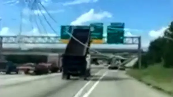 تصادف راننده کامیون احمق با تابلو های بزرگراه + فیلم