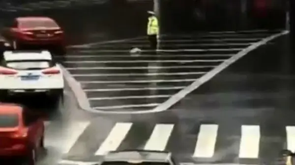 رکنا: راننده ای در حالی که پشت چراغ قرمز توقف کرده بود با دیدن یک پلیس رانندگی که در زیر باران شدید و بدون سرپناه مشغول انجام وظیفه خود بود دست به اقدام جالبی زد.