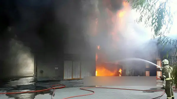 "شعله های آتش در حال سرایت به ساختمان های مجاور این سوله بود و به خاطر شدت حرارت بخش هایی از این سوله تخریب شده بود".