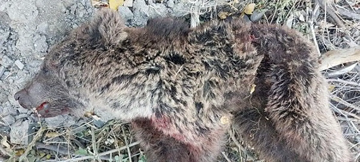 مرگ توله خرس قهوه ای در تصادف با خودرو در مازندان + عکس