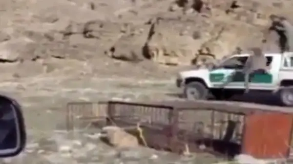 رکنا: لحظه آزادسازی یک یوزپلنگ را مشاهده میکنید که به محض رها شدن از قفس به یکی از محیط بانان حملهور میشود.