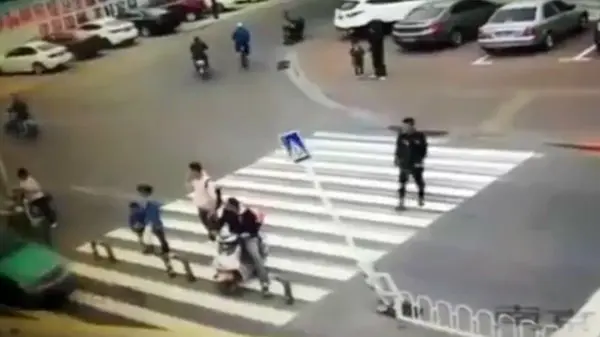 تابلوی راهنمایی و رانندگی وسط یک خیابان در چین که نشان دهنده محل عبور عابران پیاده بود، روی سر موتورسواری که قصد داشت از عرض خیابان گذر کند، سقوط Fall کرد.برای ورود به کانال تلگرام ما کلیک کنید.