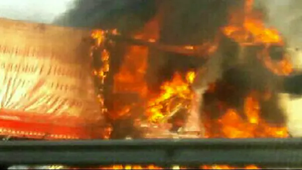 آتش‌سوزی تانکر حمل سوخت در ابتدای جاده اراک - قم / یک تن کشته و 6 تن مصدوم شدند + تصاویر