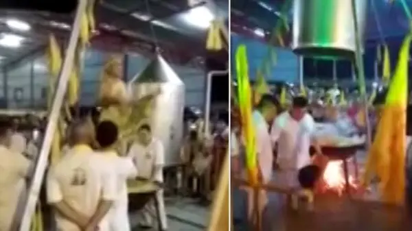 رکنا: در مراسم عجیب تذهیب روح، مرد سالخورده مالزیایی با ورود به یک ظرف فلزی دربسته بر روی آتش قصد تذهیب روح و جسم خود را داشت که جانش را از دست داد.