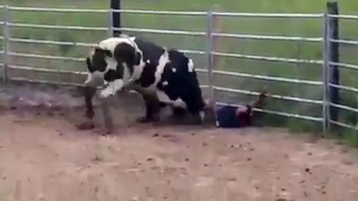 ببینید گاو وحشی چند بار مرد جوان را لت و پار کرد!+فیلم