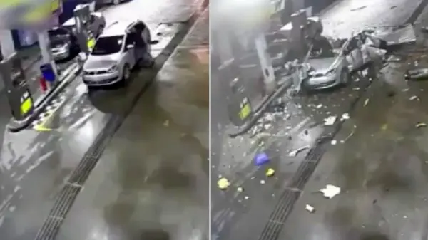رکنا: یک خودرو حین سوخت گیری در پمپ گاز به طرز وحشتناکی منفجر شد.
