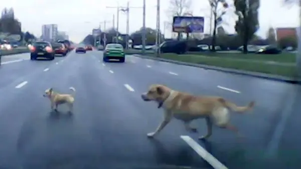 لحظه تصادف توله سگ بازیگوش در اتوبان + فیلم