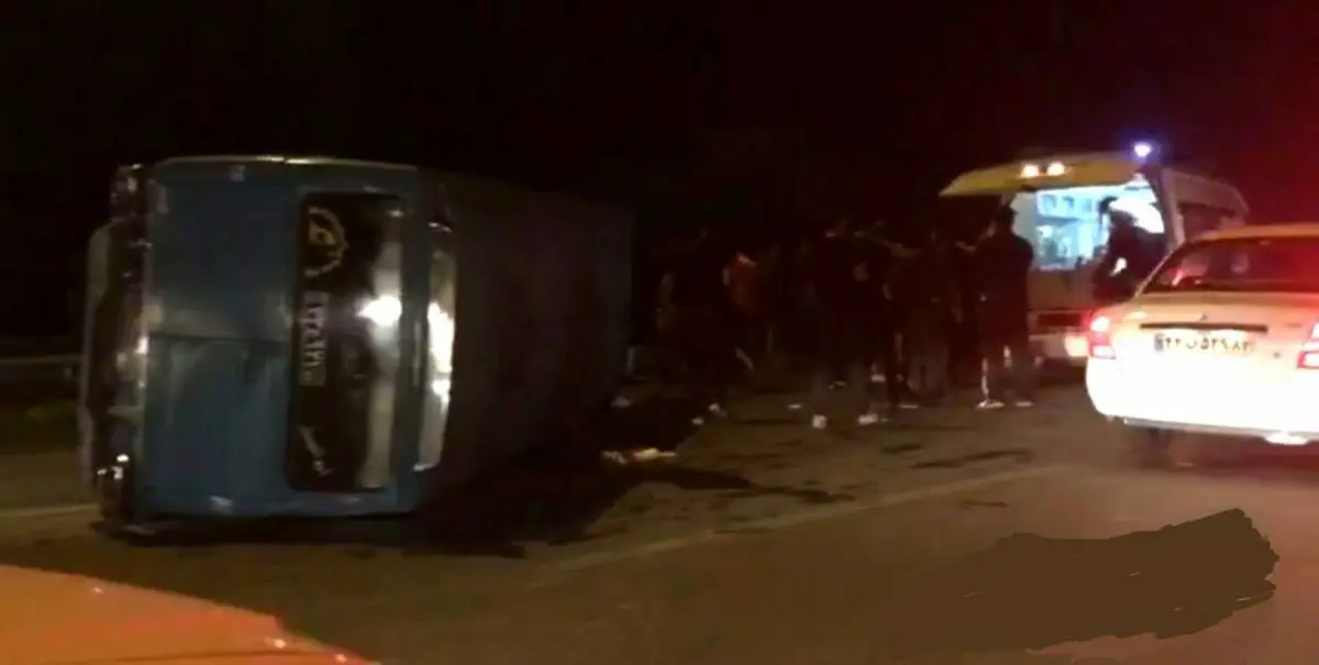 واژگونی مینی بوس در جاده ساری-قائمشهر