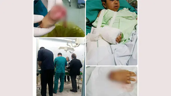 پیوند دست قطعشده پسر 7 ساله زلزلهزده + عکس