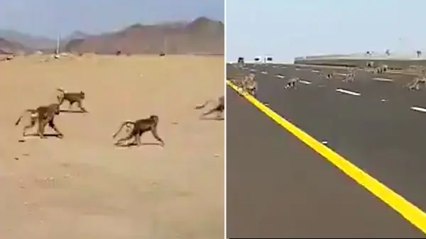 لحظه هجوم خطرناک میمون ها به بزرگراه + فیلم