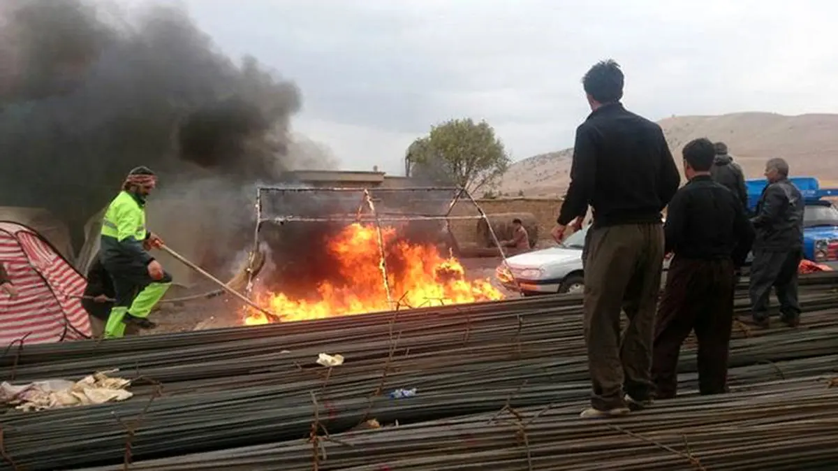 لحظه آتشسوزی چادر زلزلهزده ثلاثباباجانی + عکس
