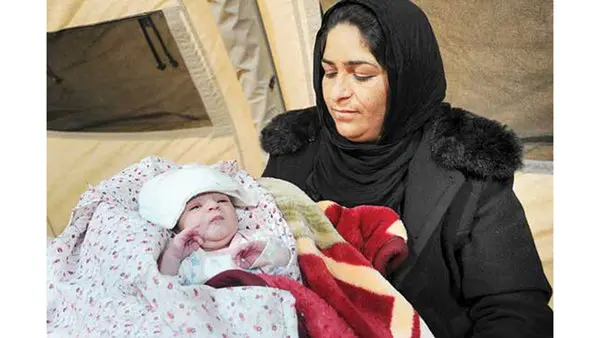 مادر نوزاد متولد شده در مناطق زلزلهزده کرمانشاه از بیمو امیدهای زندگی دخترش میگوید