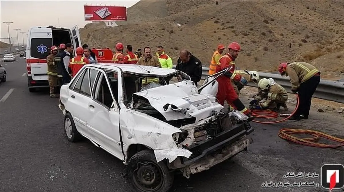 گرفتار شدن زن جوان در پراید له شده در بزرگراه شهید خرازی + تصاویر