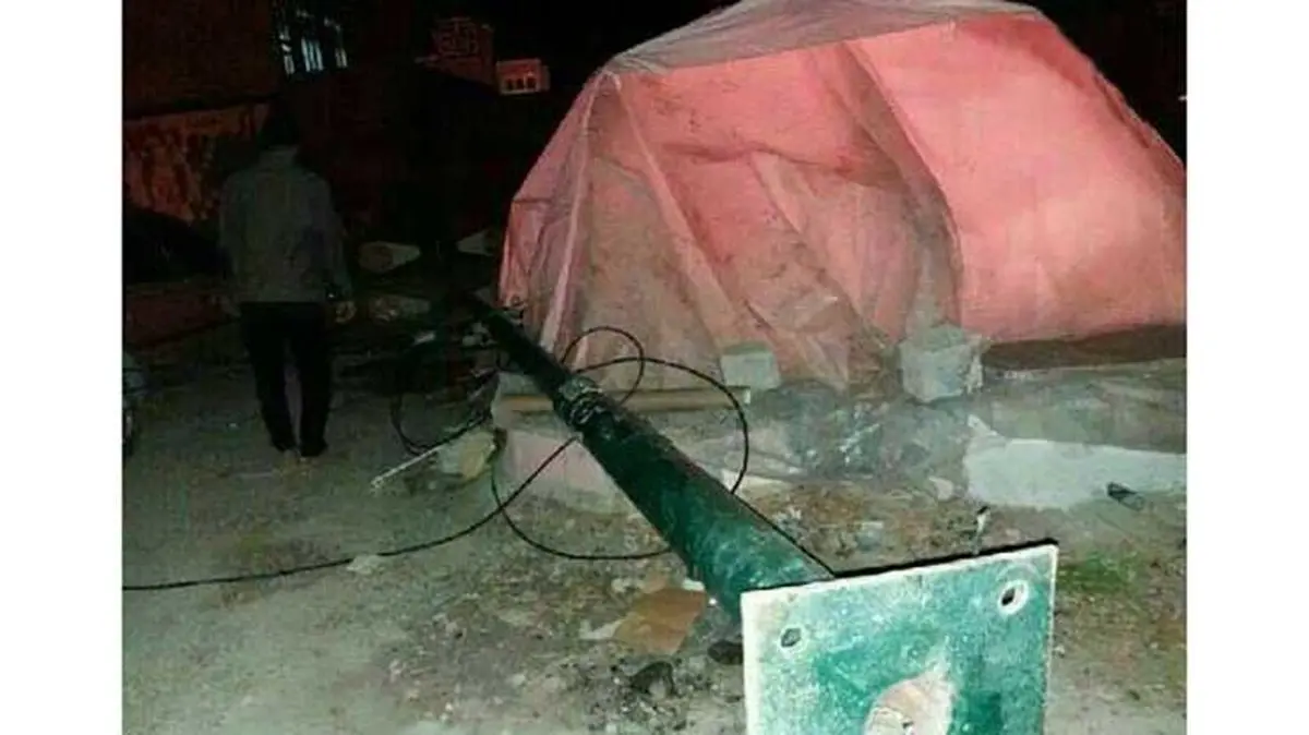 حوادث رکنا: تصویری از سقوط تیر چراغ برق اصلی کنار ساکنین چادر بر اثر برخورد کامیون را در این خبر مشاهده کنید.