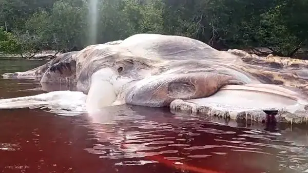 موجود دریایی یاد شده حدود ۱۵ متر طول و ۶ تا ۷ متر عرض دارد و جریان آب دریا آن را به ساحل آورده است. به لحاظ اندازه، می توان گفت هر دو گمانه زنی در رابطه با ماهی مرکب یا نهنگ بودن می توانند در رابطه با این جانور صحت داشته باشند زیرا هر دو حیوان یاد شده قابلیت رشد و رسیدن به چنین سایزی را دارند. اما هنوز هویت واقعی این هیولا کشف نشده و نیروهای محلی نظری در این رابطه ارائه نداده اند.