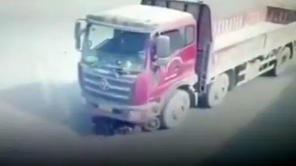 در شهر زاوژوانگ کشور چین بی احتیاطی یک راننده کامیون حادثه Incident آفرید، زن جوانی با موتور سیکلت در حال عبور از خیابان بود، ناگهان هنگام پیچیدن در مسیری دیگر، با موتور خود زیر یک کامیون رفت.