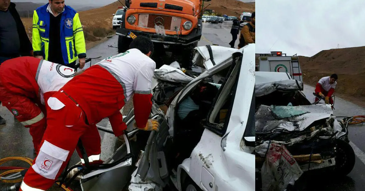 جان دادن تلخ سرنشینان پراید در زیر چرخ های کامیون + عکس