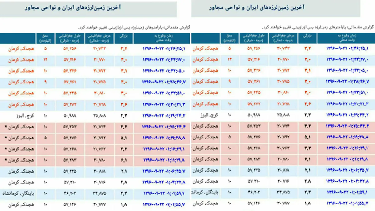 زلزله های ایران از شب گذشته تاساعت 5 صبح امروز + فیلم
