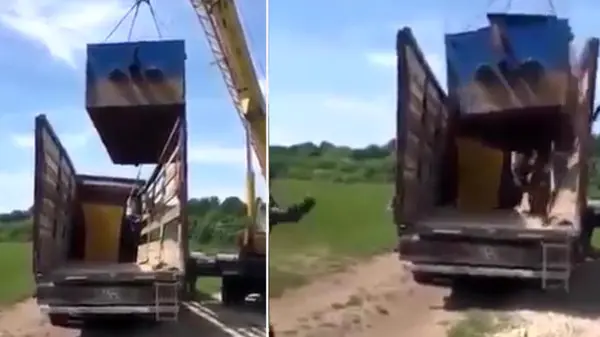 به گزارش گروه ترجمه رکنا؛در این ویدئو مشاهده می شود که محموله ای که می خواهند آن را پشت یکی از کامیون ها بگذارند؛ ناگهان به دلایل نا مشخص به طرز وحشتناک و تلخی بر روی یک کارگر می افتد و جان او را می گیرد.برای ورود به کانال تلگرام ما کلیک کنید.