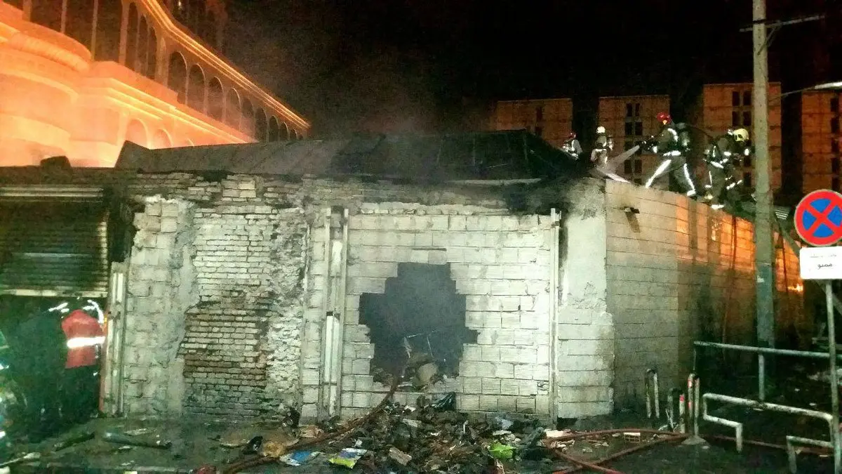 آتش سوزی در انبار ظروف میدان شوش/ یک آتش نشان مجروح شد + عکس