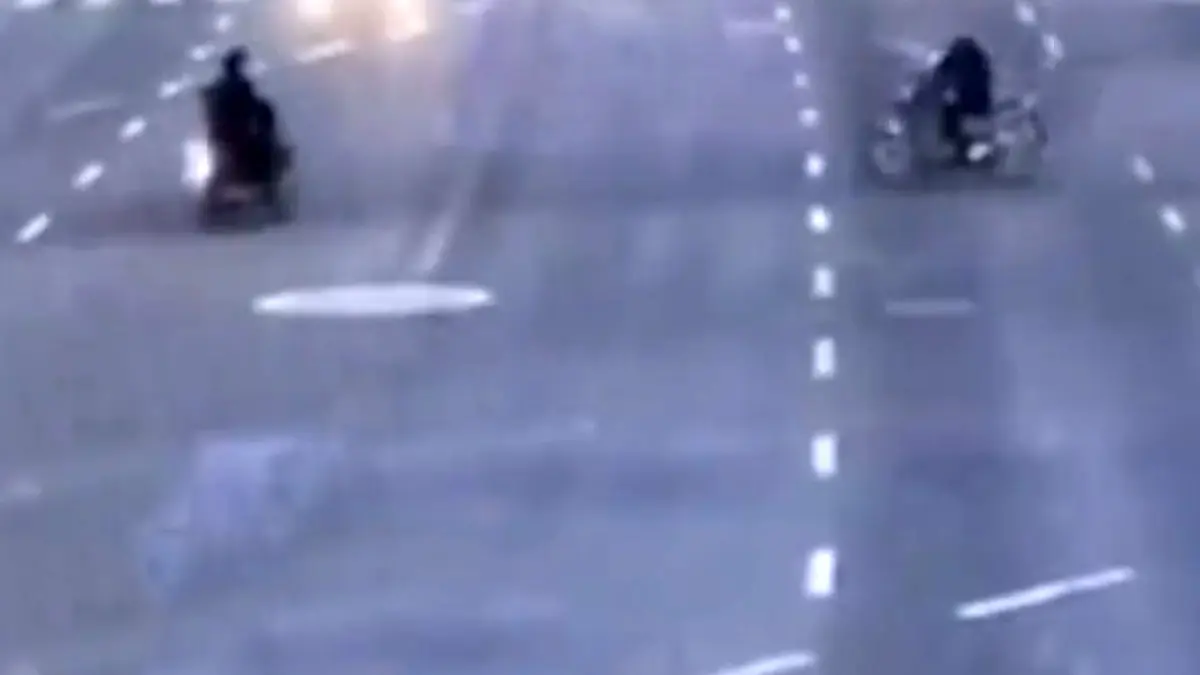دو موتورسوار در تقاطع خیابانی در چین مشغول به حرکت بودند که با سرعت زیاد به یکدیگر برخورد کردند.