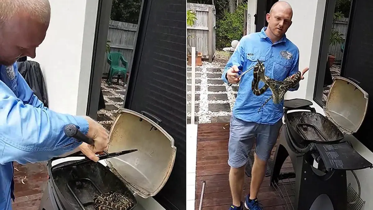 کمین مارسمی در کبابپز یک خانواده! +تصاویر دلهره آور