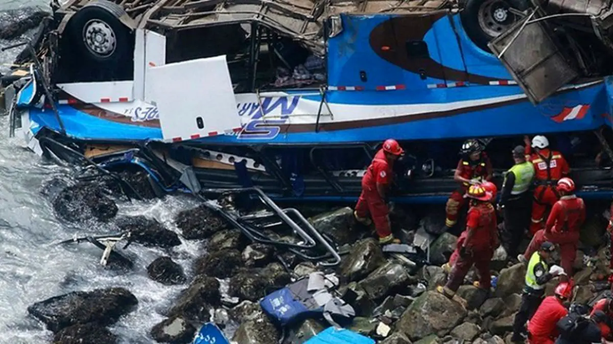 این اتوبوس که حامل 57 مسافر به مقصد پایتخت پرو بود، پس از برخورد به یک تراکتور از سراشیبی جاده به سمت ساحل سنگی پایین صخره سقوط کرد. اتوبوس در کنار ساحل واژگون شد.
