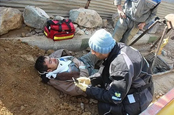 ایمان کیانی‌فر؛، فرمانده آتش‌نشانان اعزامی به محل حادثه Incident درباره جزئیات این حادثه اظهار کرد: با رسیدن نیروهای عملیات به محل حادثه چاهی به عمق 30 متر دیده می‌شد که یک کارگر افغانستانی در هنگام حفر مسیر ارتباطی بین دو چاه، به علت ریزش یک سنگ به ابعاد 50 سانتی‌متر از دیواره چاه و سقوط Fall بر روی دست و کتفش، وی را مصدوم و در انتهای چاه گرفتار کرده بود.