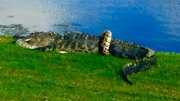 تصاویری که به تازگی منتشر شده است جدال مرگبار یک پیتون برمه غول پیکر را با یک کروکودیل در حوالی یک زمین گلف در ایالت فلوریدا آمریکا نشان می دهد. این تصاویر توسط شخصی با نام دکتر ریچارد نادلر که مشغول بازی گلف بود تهیه شده است. وی با کپشن " نبرد بین یک پیتون و کروکودیل. ما فکر می کنیم مار پیتون توسط کروکودیل خورده شود" این تصاویر را در فیسبوک به اشتراک گذاشت.