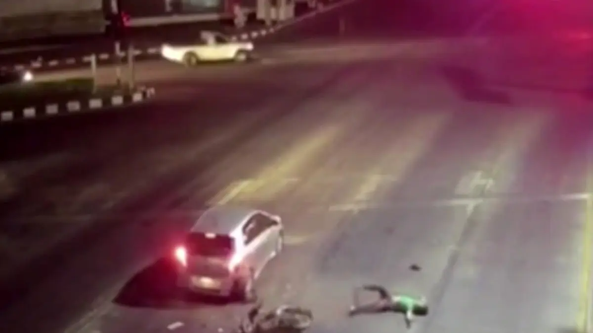 مرگ دردناک موتورسوار، 5 ثانیه پس از تصادف + فیلم