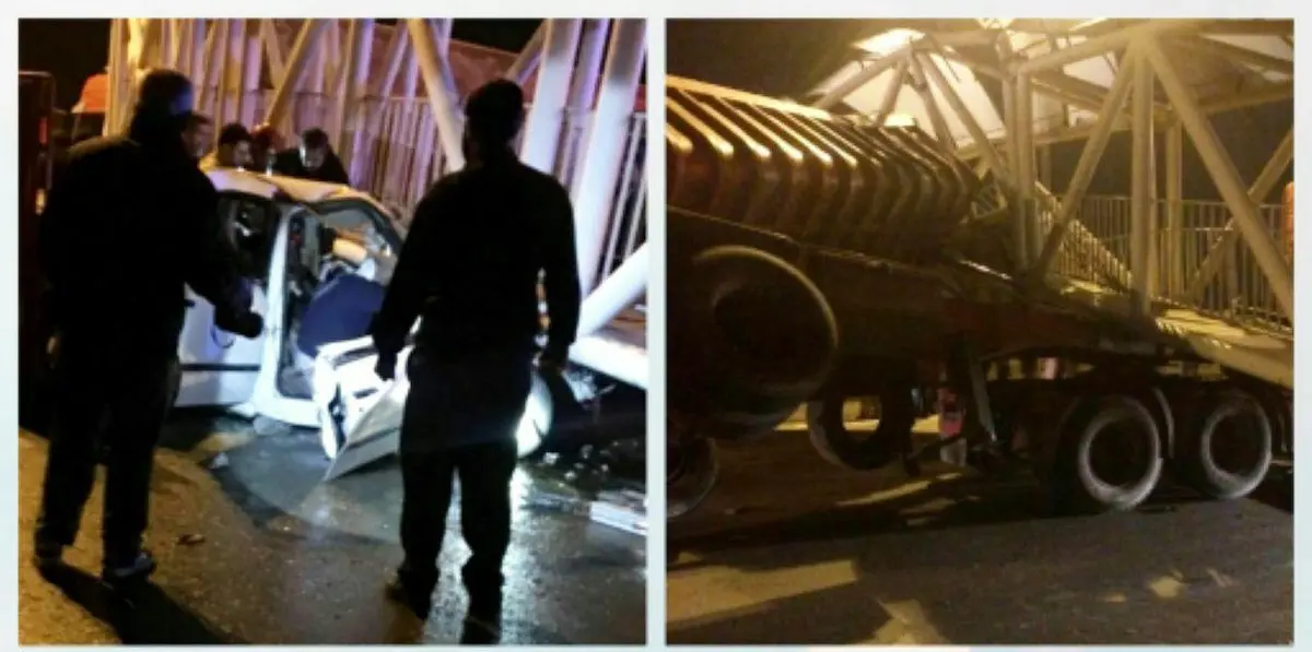 تکمیلی | ۱ کشته و ۳ زخمی در حادثه سقوط پل عابر پیاده