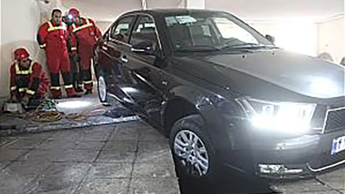 فرو نشست کف پارکینگ در شهران خودرو سواری را بلعید