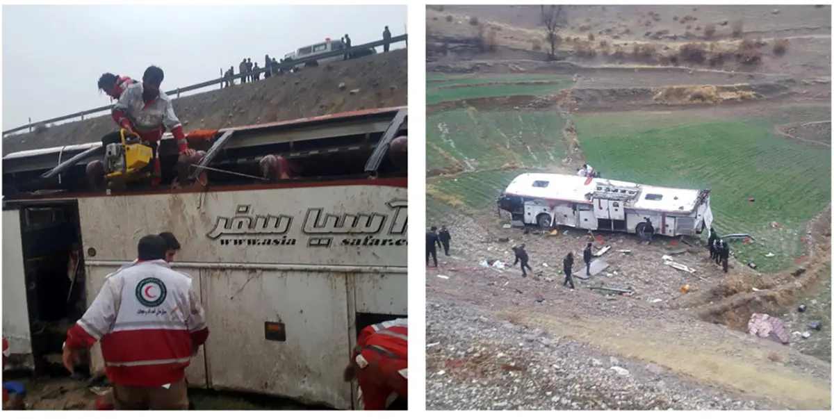 حوادث رکنا: واژگونی اتوبوس و سقوط به دره در مسیر یاسوج به اصفهان حادثه تلخی را رقم زد.