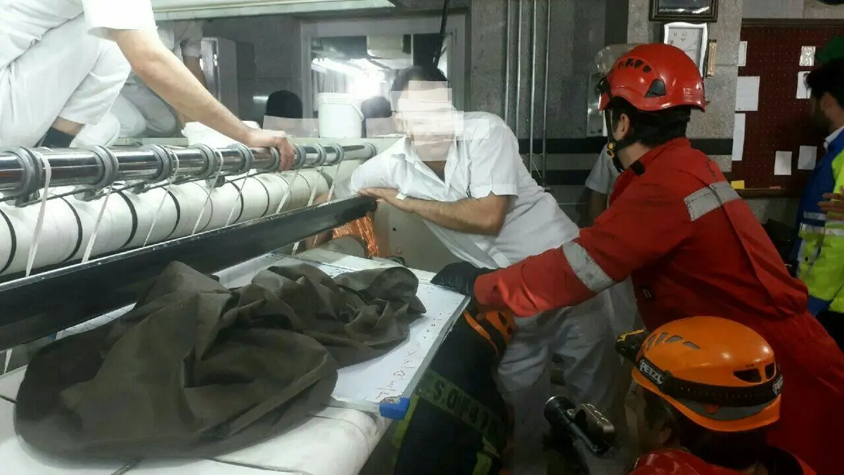 دردسر گیر کردن دست کارگر داخل دستگاه خشک کن در مشهد + عکس