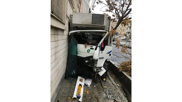کامیون بدون ترمز و راننده در سعادت آباد 3 خودرو و یک درخت را درهم کوبید+عکس