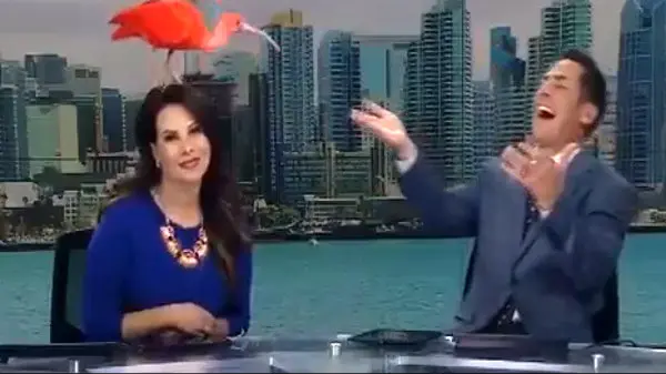 لحظه فرود یک پرنده روی سر مجری خبر حین اجرای زنده تبدیل به یکی از ویدئوهای داغ شده است. این پرنده که جزو پرندگان باغ وحش سن دیاگو کالیفرنیا بود ناگهان هنگام پخش خبر روی سر مجری زن فرود آمد. این بخش خبری مربوط به قسمتی از برنامه ای با نام "روز باغ وحش" بود که هنگام صبح از کانال محلی در حال پخش بود.