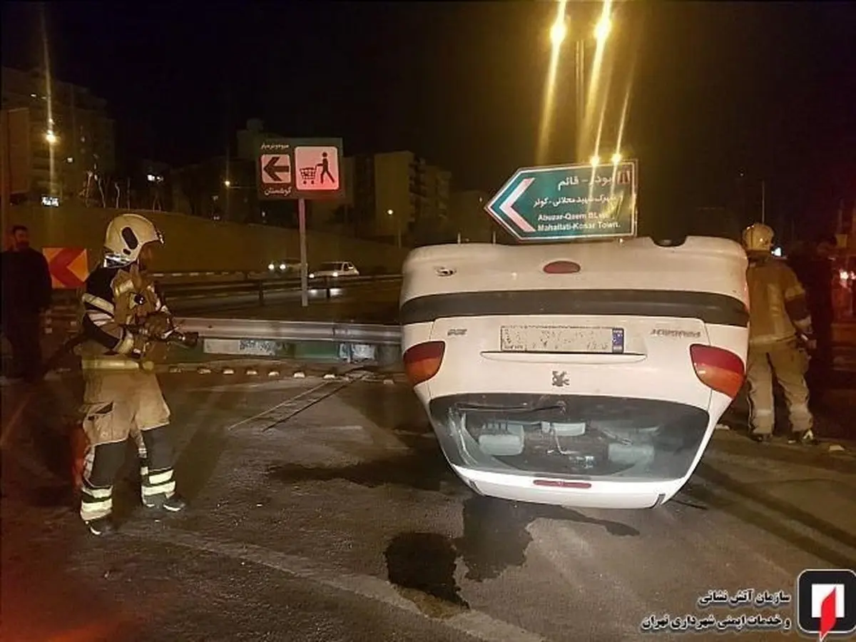 واژگونی پژو ۲۰۶ در تصادف با ۲۰۶ + تصاویر