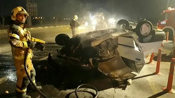 رکنا: خودروی پراید حین حرکت در جاده خاوران به علت نامشخصی واژگونی شد و از قسمت موتور آتش گرفت.