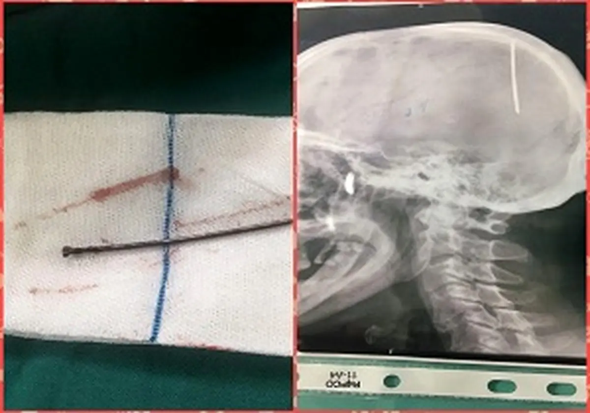 رکنا: پزشکان میخ ۵ سانتی متری را در یک عمل جراحی حساس در بیمارستان شهید رجایی قزوین از سر یک مصدوم بیرون کشیدند.