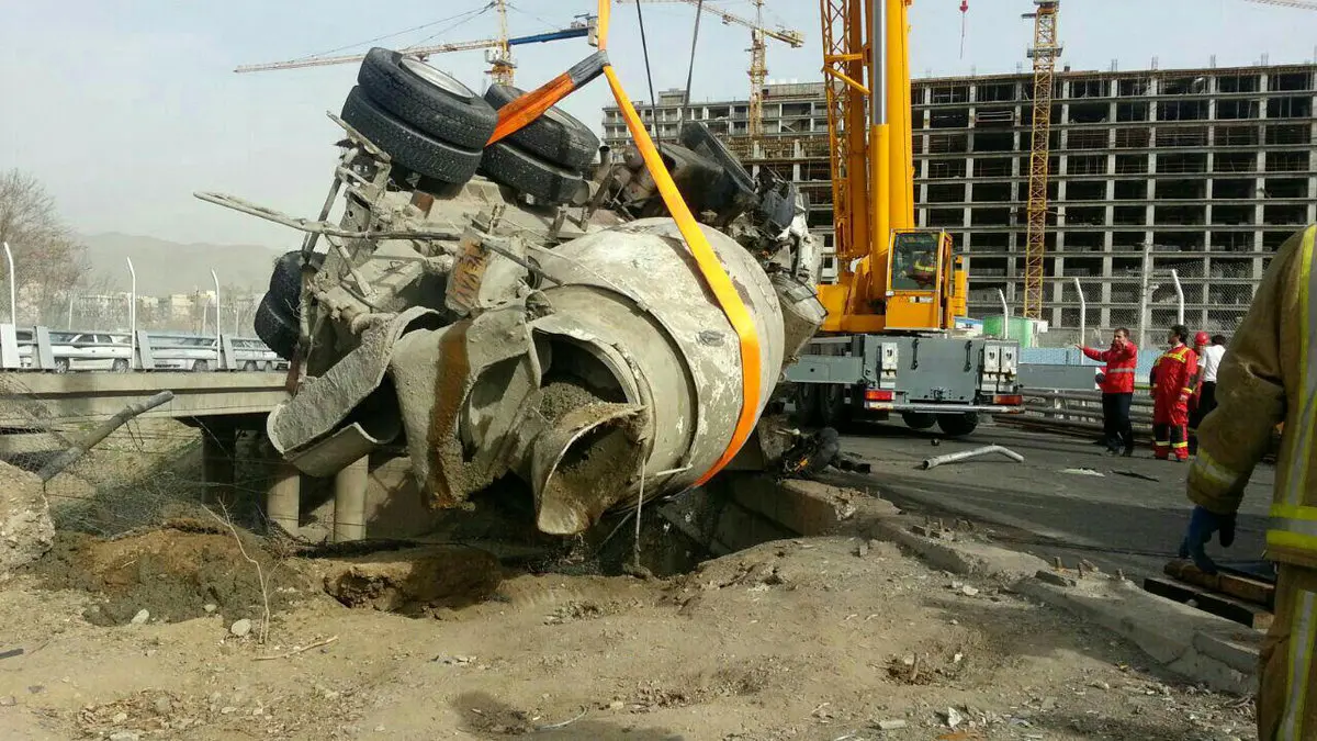 حوادث رکنا: واژگونی یک میکسر حامل بتن با ۳۰ تن وزن در مسیر شرق به غرب اتوبان تهران-کرج جان راننده را گرفت.