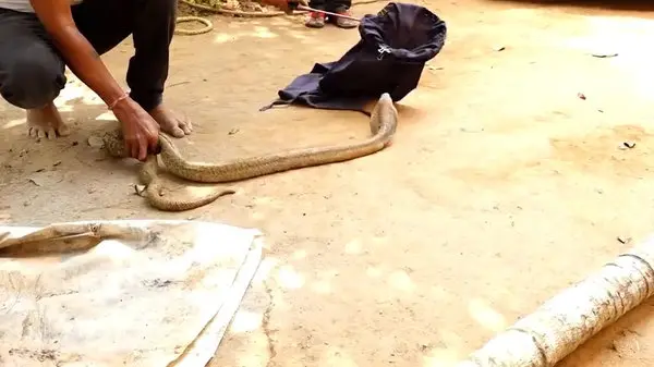 مارگیر دوبار برای خارج کردن مار از داخل چاه دست به کار شد اما زمانی که موفق به این کار نشد جان خود را به خطر انداخت و به داخل چاه رفت تا مار را با خود به بیرون بیاورد. او پس از خارج کردن مار از چاه آن را درون یک کیسه می اندازد و او را از محل چاه دور می کند.برای ورود به کانال تلگرام ما کلیک کنید.