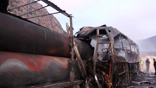 بنابر اعلام رسانههای محلی ترکیه، در این حادثه Incident رانندگی یک دستگاه اتوبوس پس از برخورد با کامیون دچار حریق شد که دستکم ۲۰ کشته و ۲۰ مجروح برجا گذاشت.